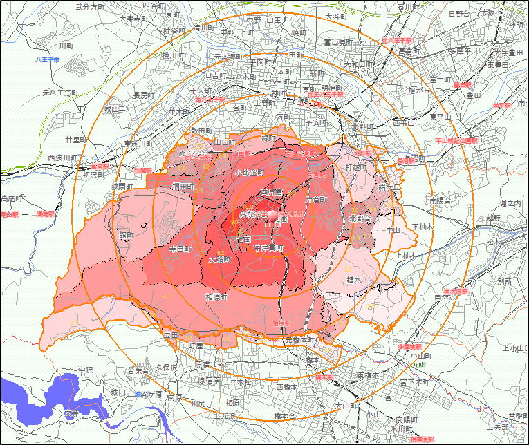 d)商圏マップの作成単位 ・「市区町村単位」 ⇒ 横浜駅などの大きな駅の商業集積のケースなど、都心の店舗のケース |